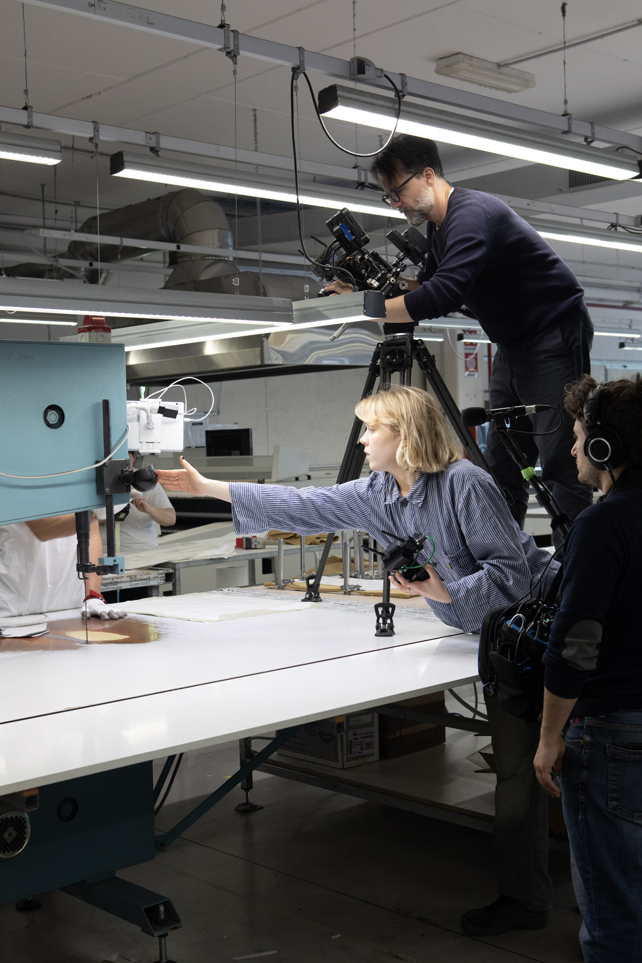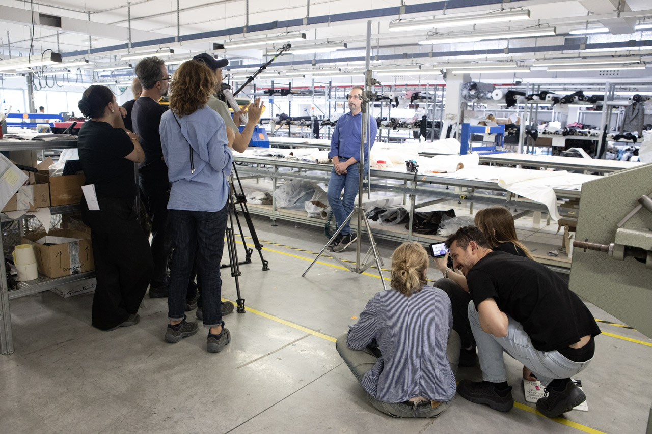 Director is a role that intersects with many others, like that of screenwriter Chiara who, together with the other students in her team, started by preparing all the pre-interviews to do before shooting. The pre-filming interview process is essential because it helps the screenwriting team establish a red thread and storyline. They also visited the companies beforehand to understand how people worked, and the movements and artisanal practices that they should include in the film.