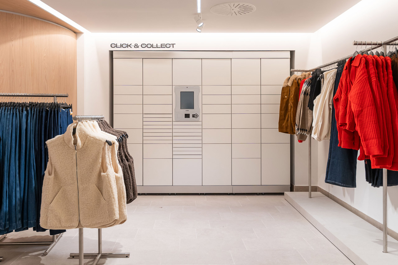 Another new feature in this store is the installation of Click & Collect lockers, which integrate seamlessly into the brand’s broader omnichannel ecosystem. The lockers will allow customers to easily pick up or return online orders without the hassle or wait of standing in line. Another benefit of the Click & Collect lockers is that customers must pass through the main floor on their way to the lockers, providing another touchpoint that encourages engagement and ultimately purchase. Both these integrations allow for the best possible experience for the customer, one that is totally hassle-free, leading to a more enjoyable experience, greater customer retention, and more sales.