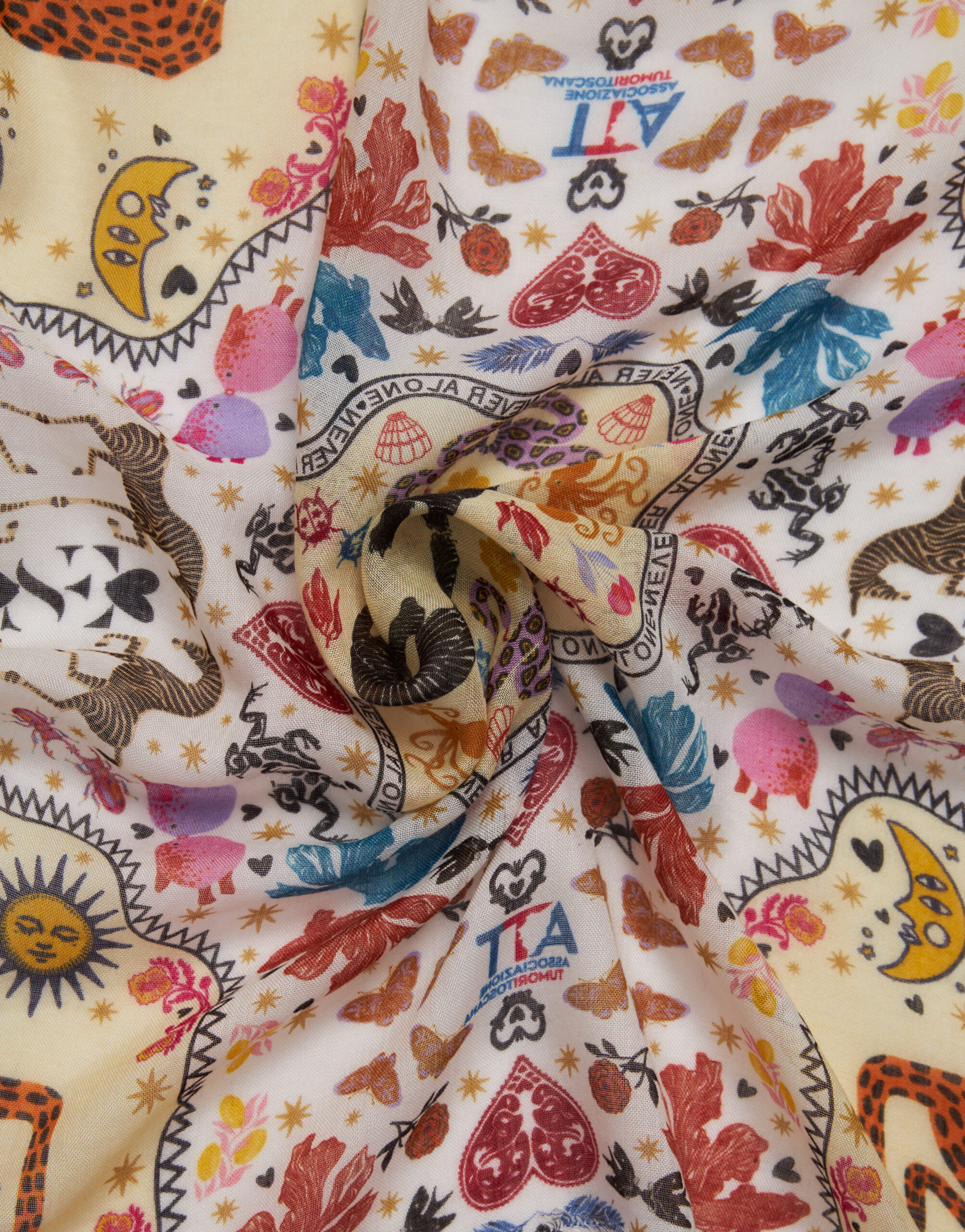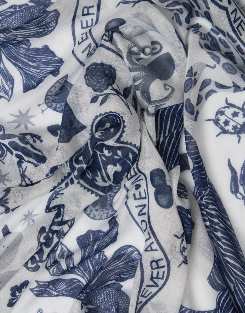 La grafica, ispirata alla forza rigeneratrice del mondo naturale e alla dolcezza dell’abbraccio umano, sarà applicata a un’esclusiva linea di sciarpe, stole e foulard che Faliero Sarti distribuirà tramite i suoi canali wholesale e retail. Parte del ricavato della vendita sarà devoluta a sostegno delle attività dell’Associazione Tumori Toscana che dal 1999 offre cure e sostegno domiciliari gratuiti ai malati di tumore e ai familiari