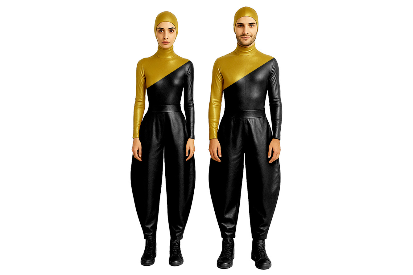 I approached the costumes as a choreographic second skin. Every line, every weight, every fabric was chosen to dialogue with athletic and scenic movement. Sport is discipline, but also grace; the costumes must support the gesture, amplify it, and never hinder it.