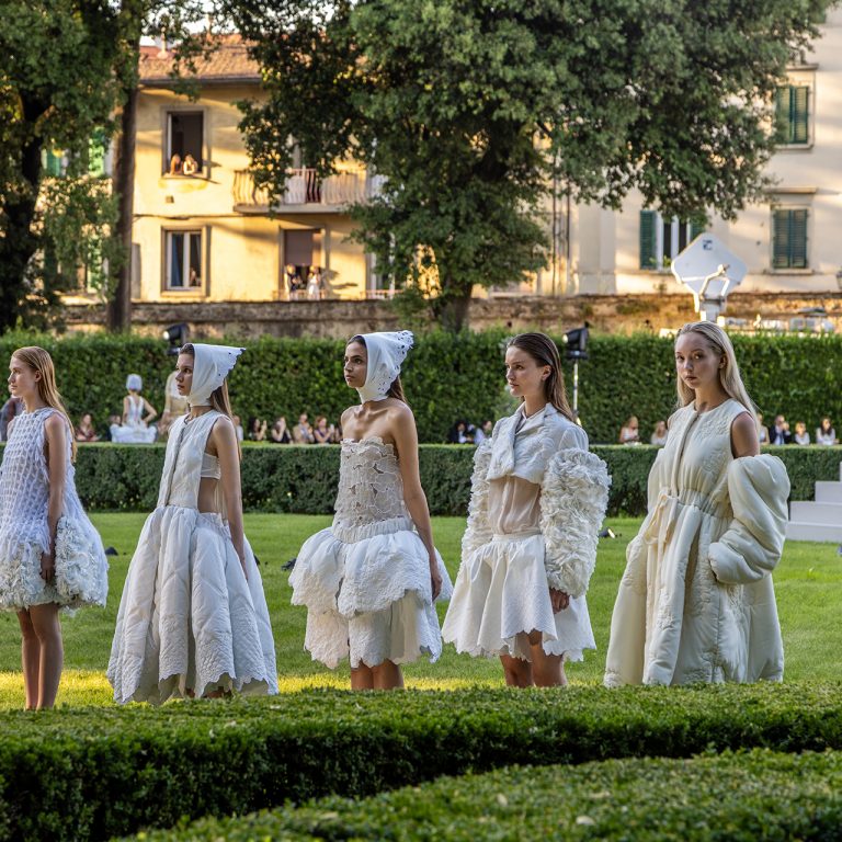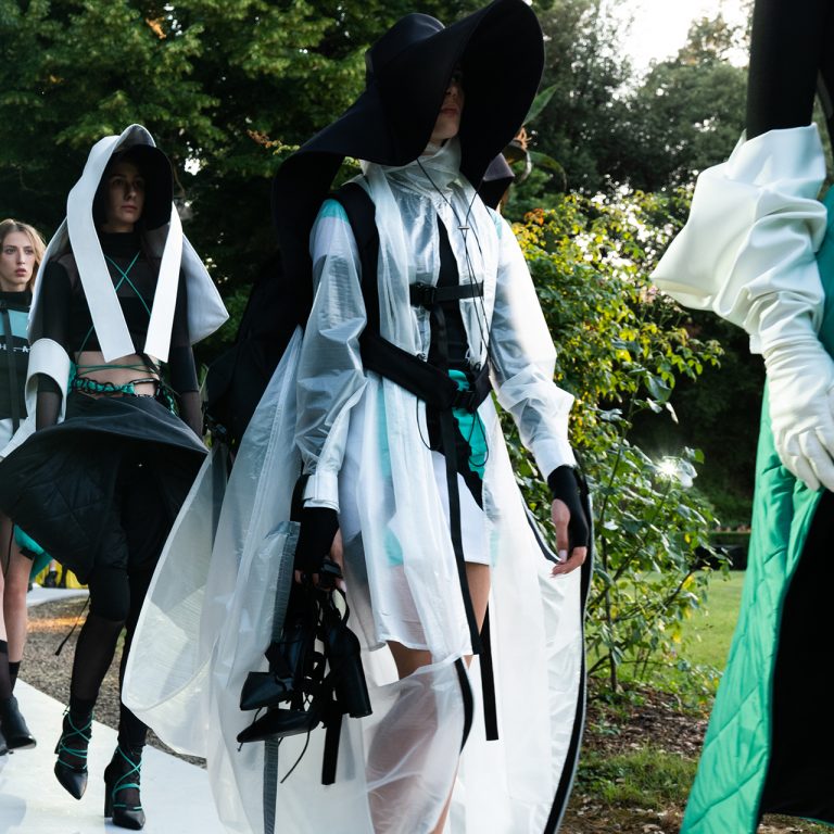 The most talented students from the fourth and final year of the Fashion Design and Fashion Design Management courses as well as a selection of students from the Masters in Collection Design and Creative Direction showcased their creative identities on the catwalk of Carpe Noctem in the beautiful Torrigiani Garden in Florence.