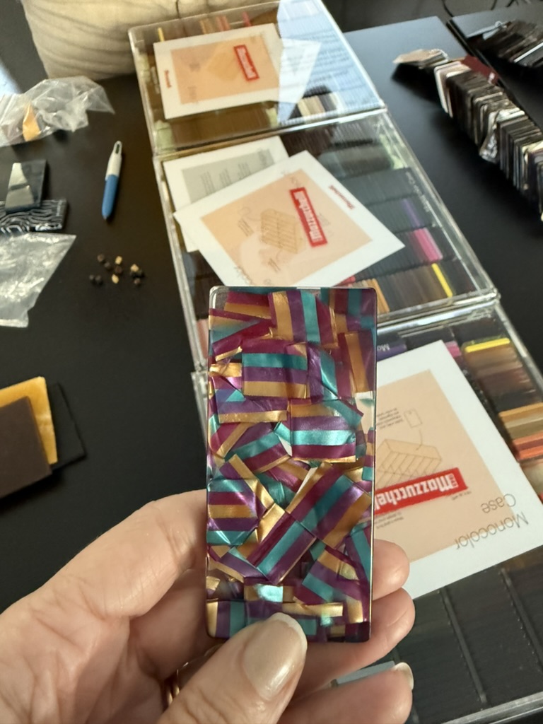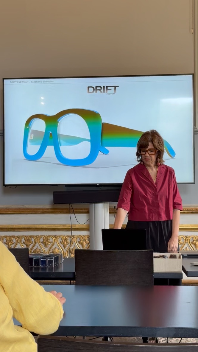 Despite being a self-proclaimed superfan of eyewear and thinking I knew more than the average person, I was so excited to be exposed to a whole new world. This profound revelation first became evident in our Materials class, where our teacher Barbara Guglielmi, Senior Product Development at Mazzucchelli, taught us about the different methods of acetate creation. It was a moment of enlightenment, illustrating the intricate depth and artistry behind something I had admired with curiosity but never understood. I had never considered the rich (Italian!) history of this material or how it could be manipulated into something that was both durable and beautiful.
