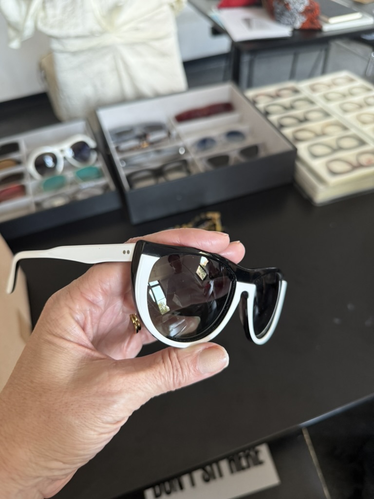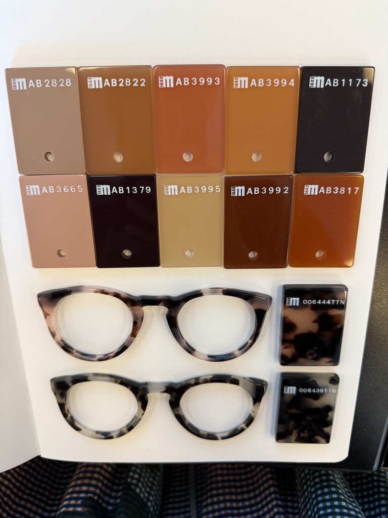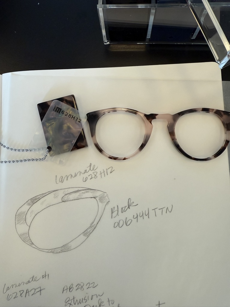 Monica also owns several eyewear shops, and I was keen to understand her experiences in both designing eyewear and learning the pain points of customers. I was fascinated to hear that working with a skilled manufacturer can result in a big, chunky frame feeling weightless on your face if properly balanced on the bridge of the nose and tops of the ears. She also explained that considerations like frames that are too high will hit the top of the cheeks and how different face shapes can affect how frames fit on the nose. Her insights were invaluable, reinforcing that a great design is not just about aesthetics—it’s about a perfect blend of form, function, and comfort. It’s UX for eyewear!